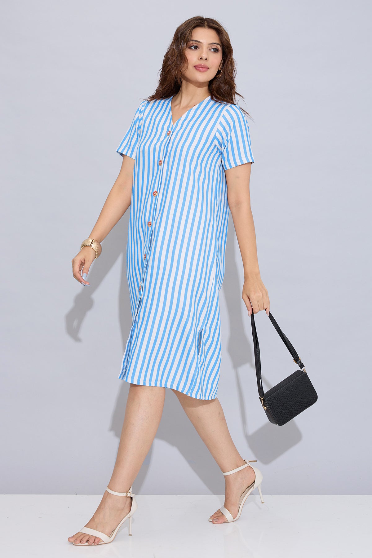 Buy Blue Stripe Button Down Dress for Women by SNEHA B Designer online available at scrollnshops