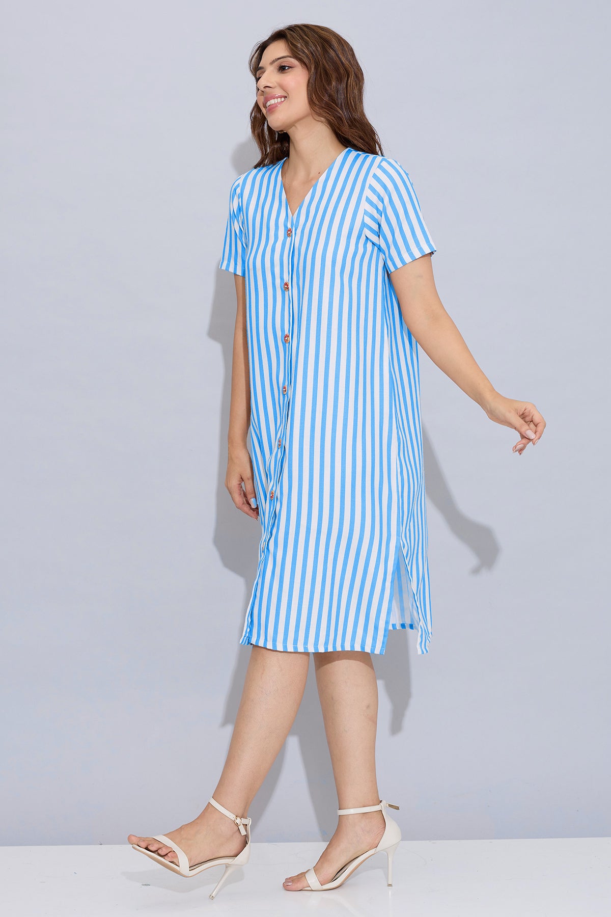 Blue Stripe Button Down Dress