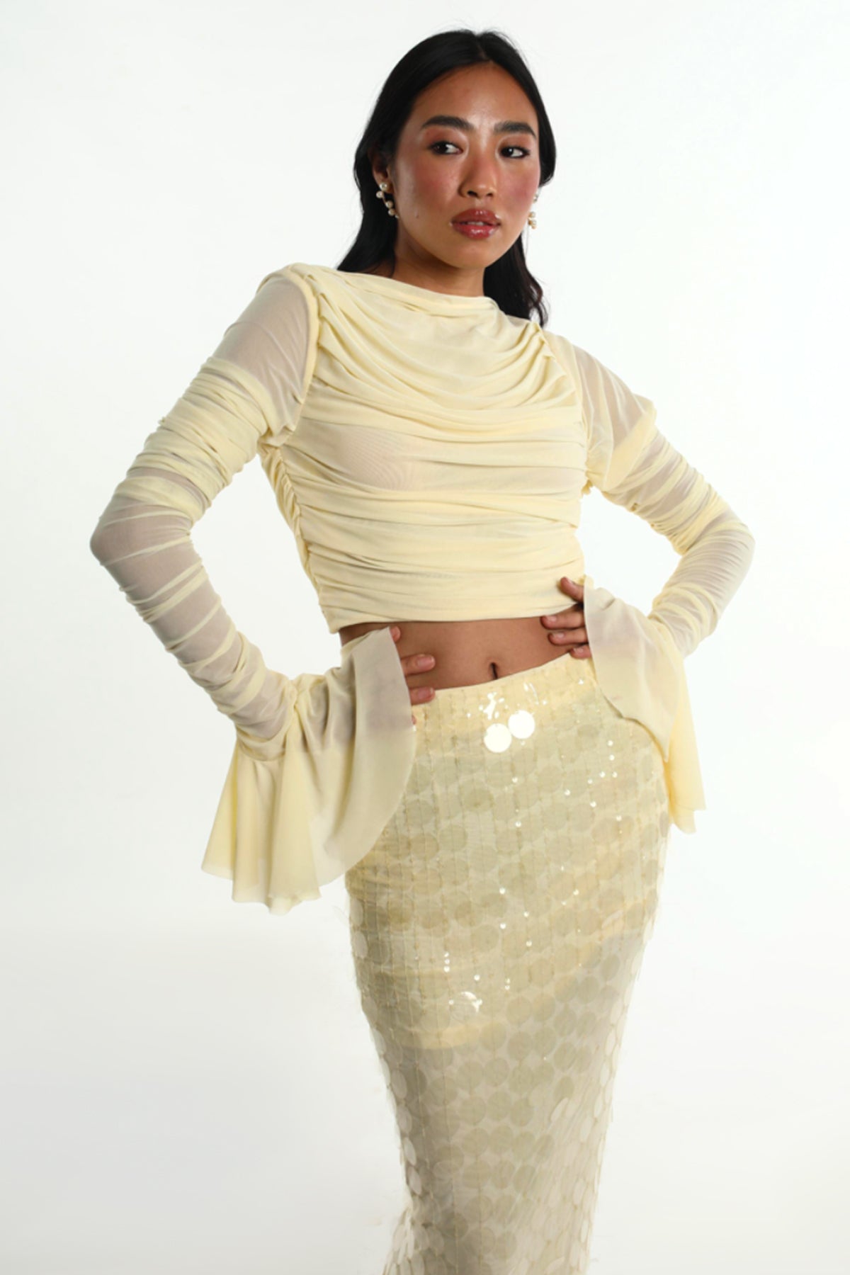 GKDedit Cream Water Sequins Co-ord Set