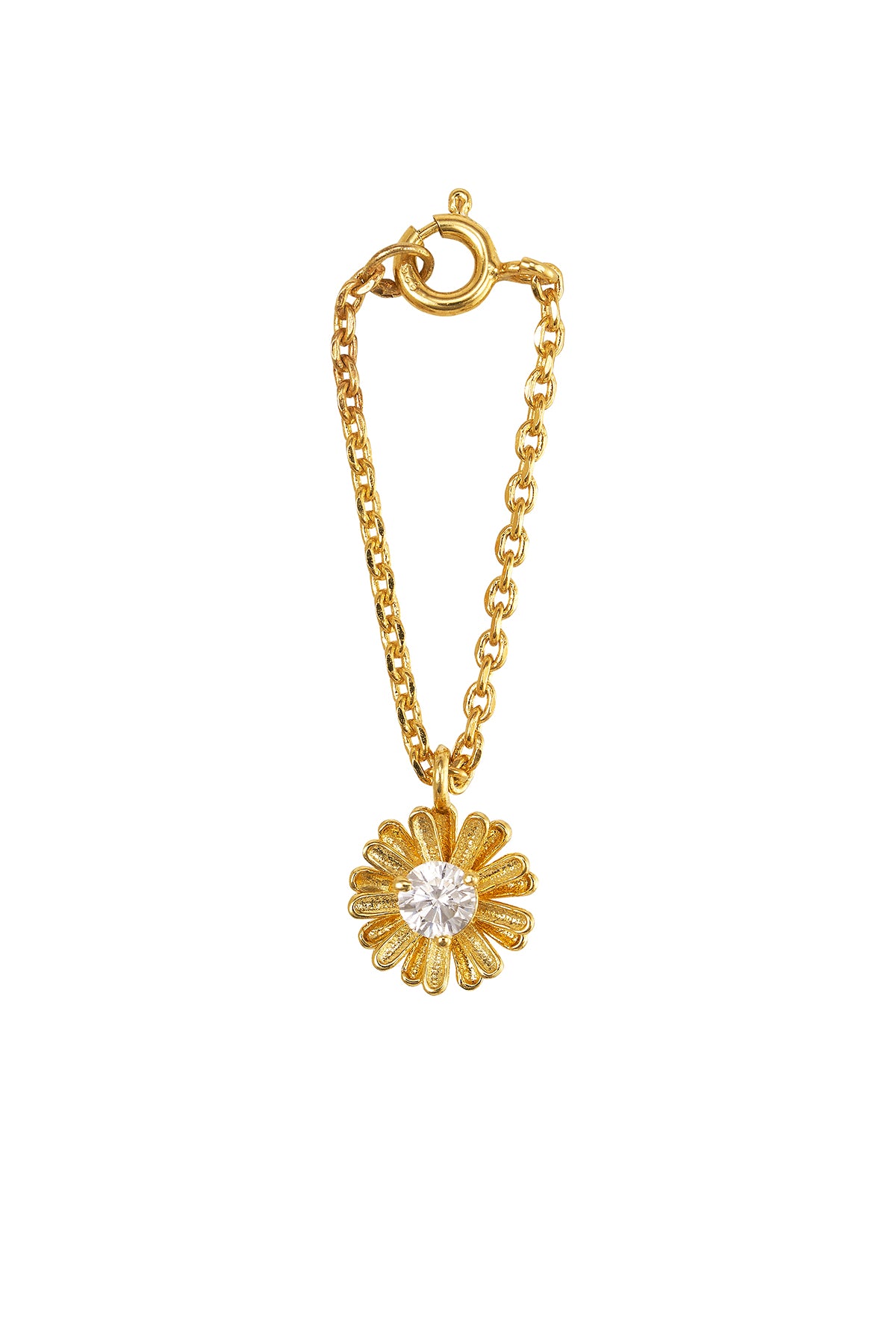 Gold 925 silver flower diamond watch charm with gold plating and spring ring clasp closure. The dimension is 1.69 x 0.39