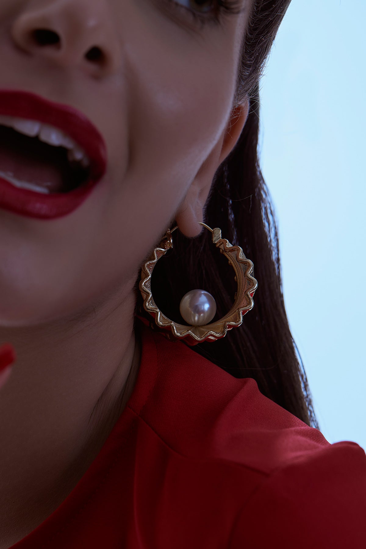 Buy Gold Brass Pearl Hoop Earrings for women by Ethnic Andaz online available at scrollnshops