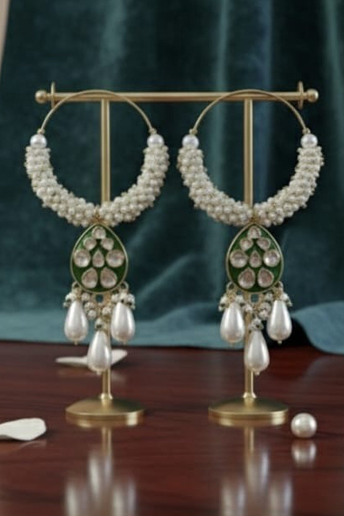 Buy Gold Pearl Bead Hoops Earrings for women by Beauty Spot Jewellery online available at scrollnshops