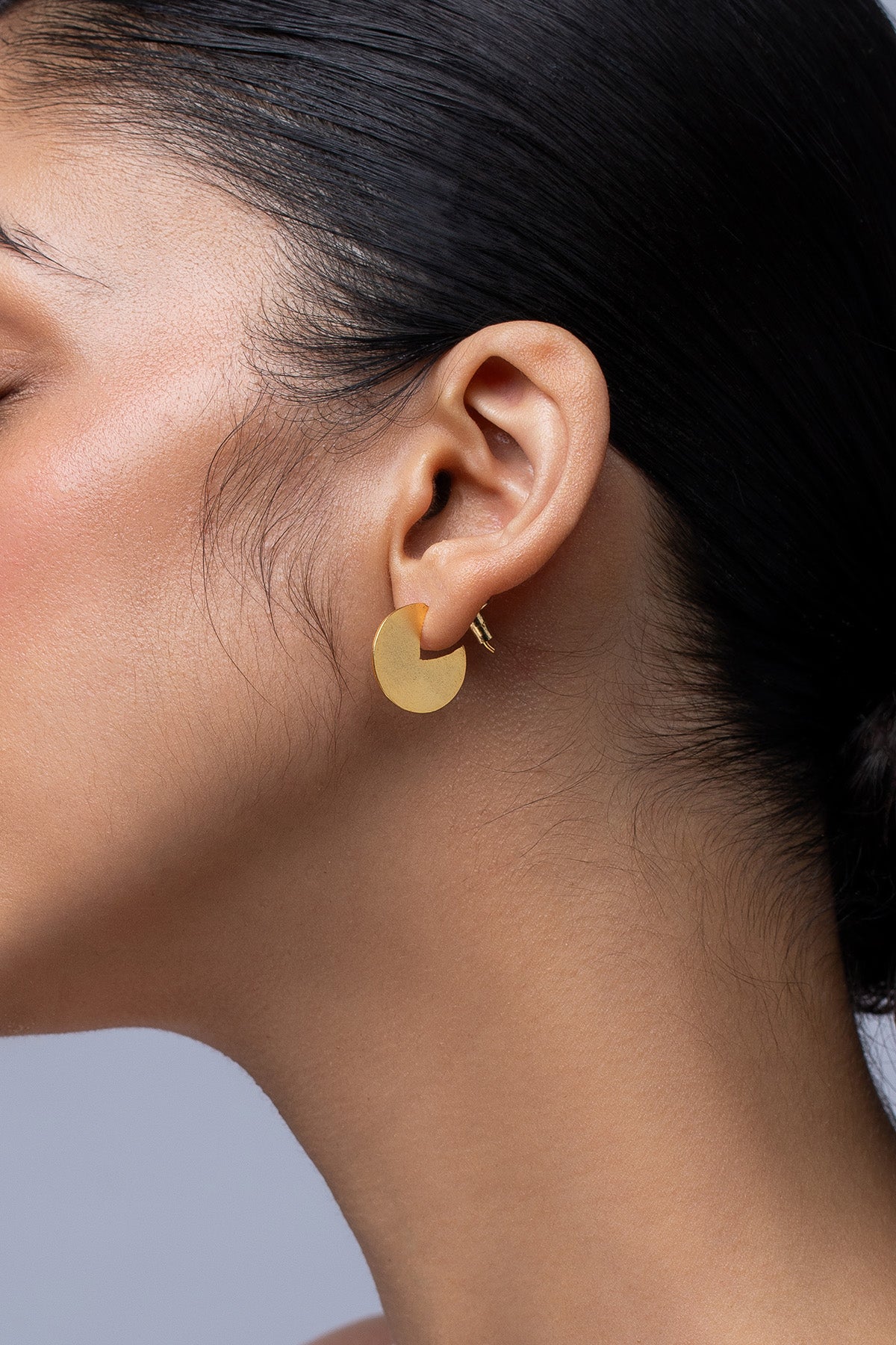 Golden brass earrings with unique crescent shape. The dimension is 2H, 2.5L, 0.1W
