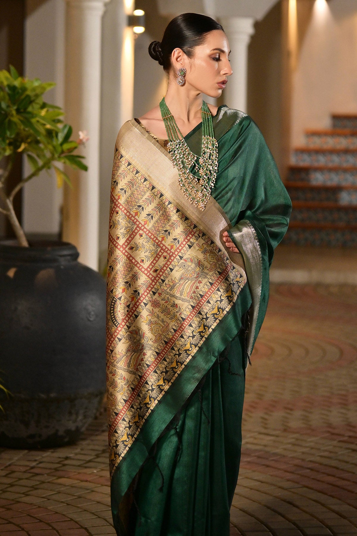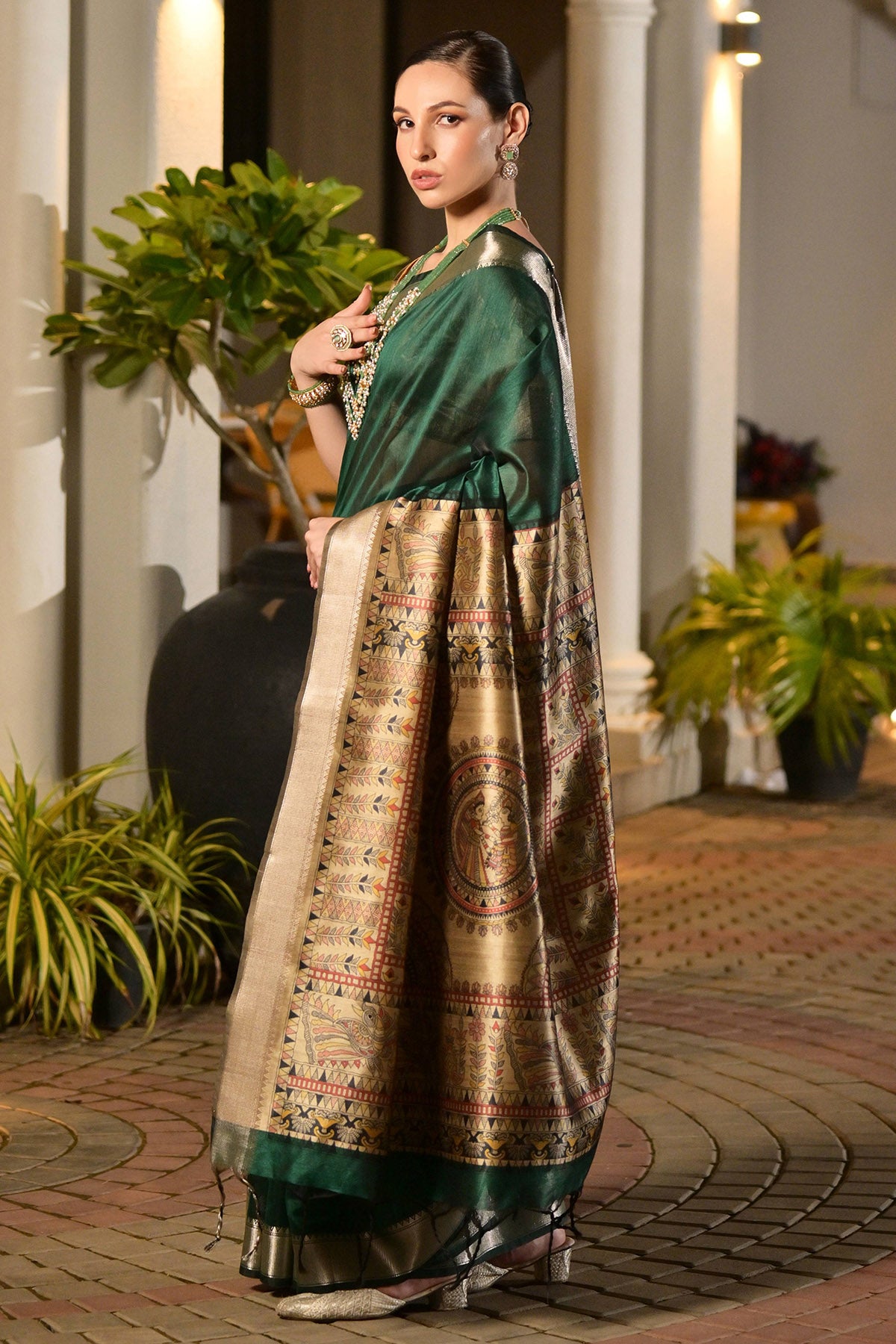 Green Kalamkari Printed Saree