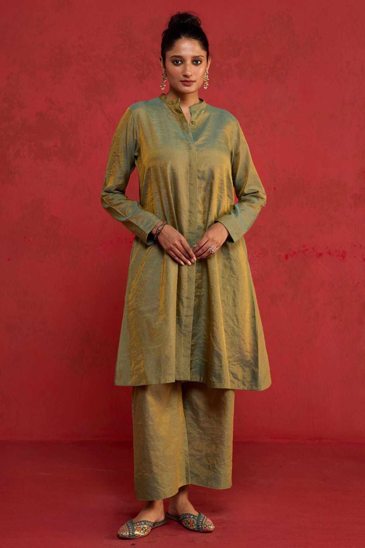 Buy Green Silk Handwoven Kurta Set for women by Rhua online available at scrollnshops