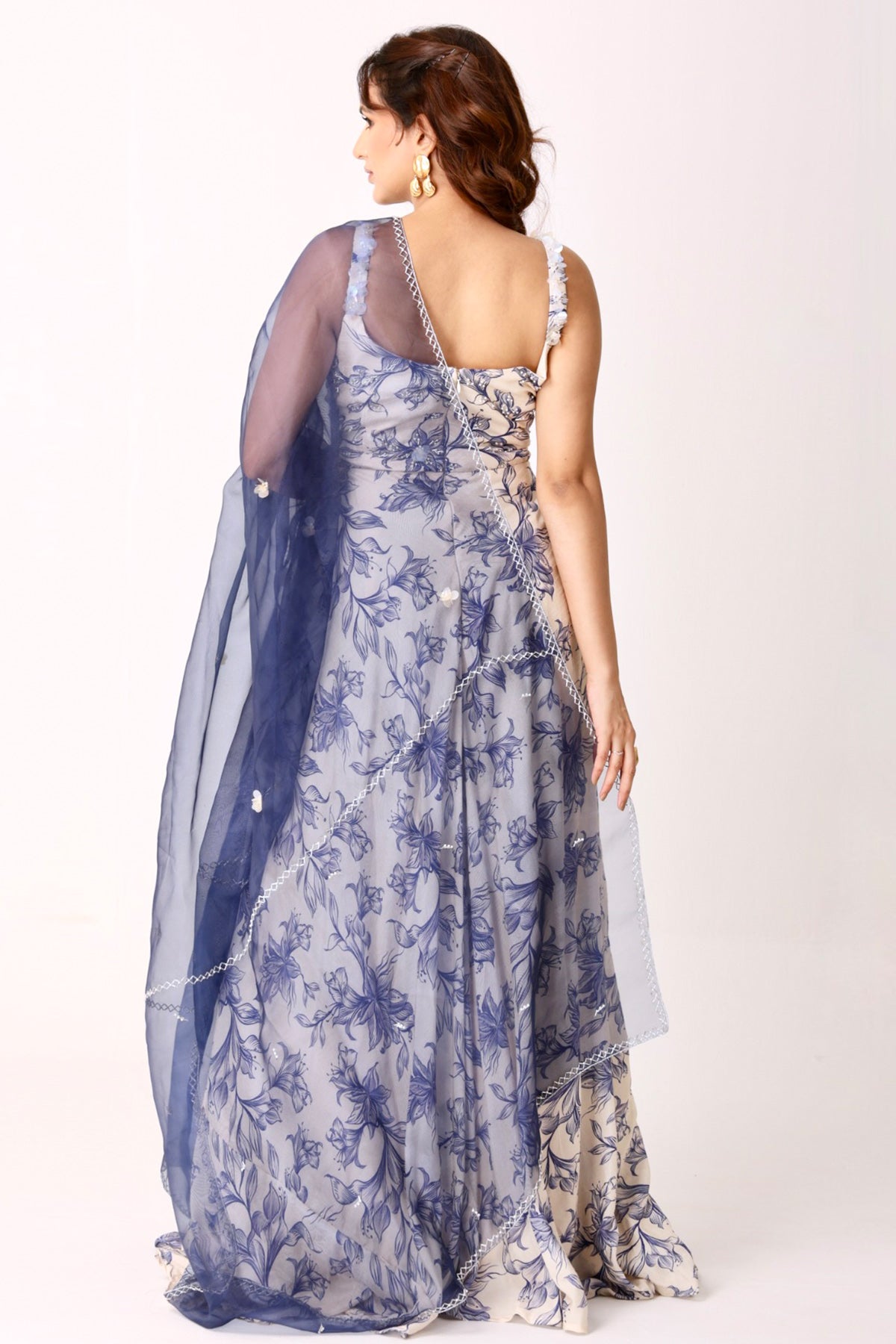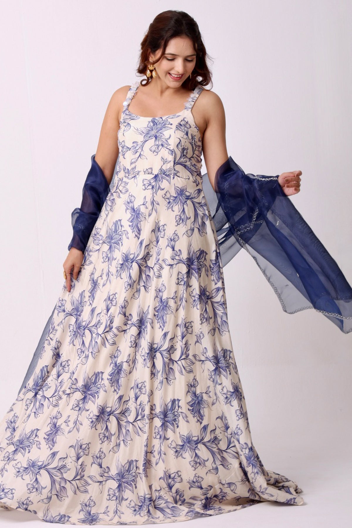 Buy Ivory & Navy Floral Anarkali for women by Namita Sharma Designer online available at scrollnshops