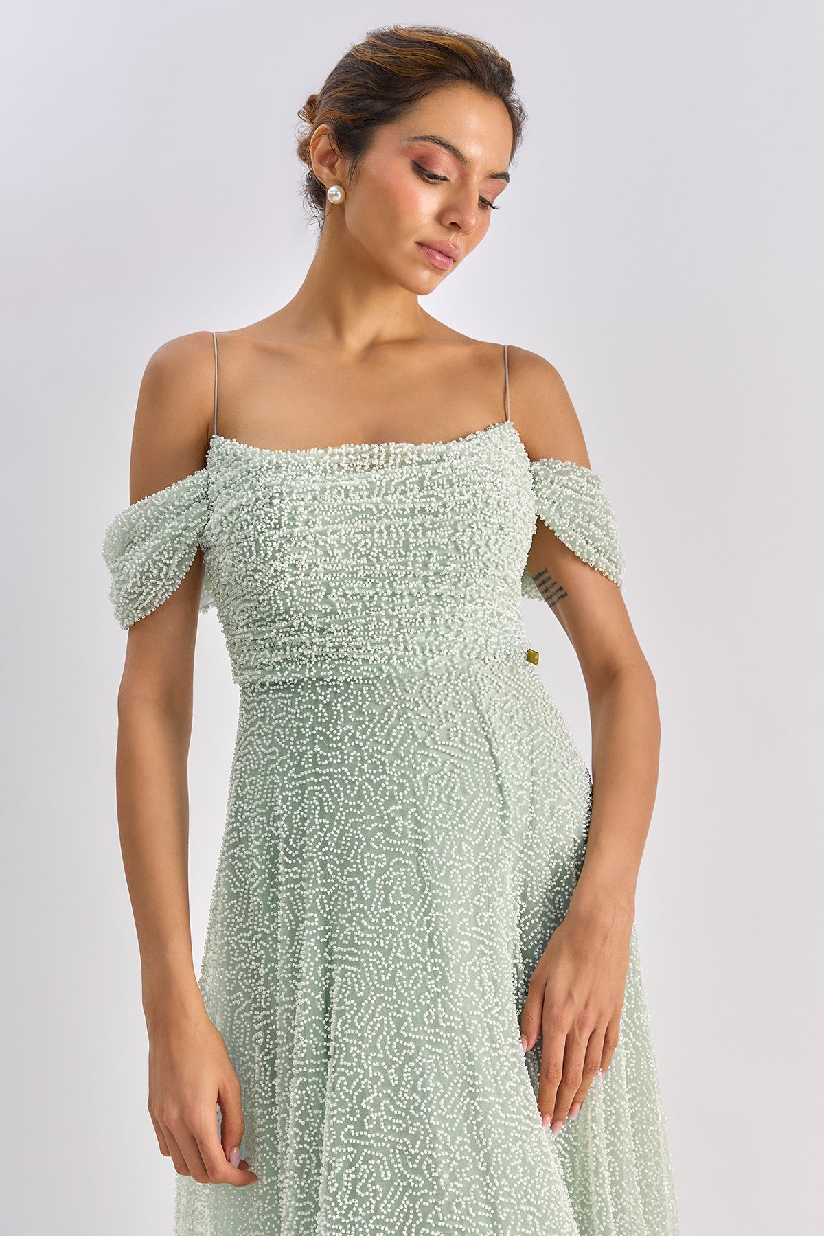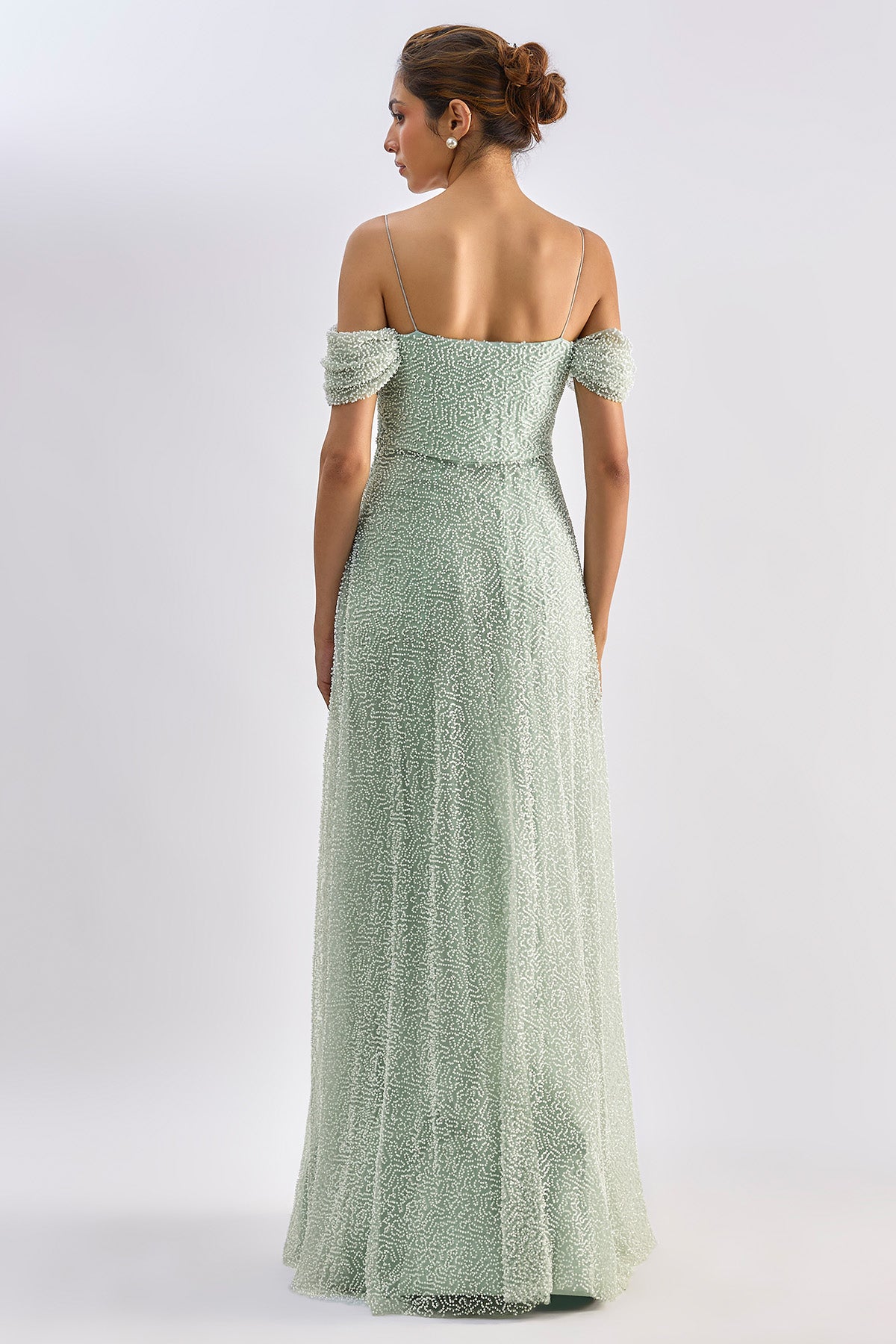 Buy Mint Embellished Ruched Gown for women by Emblaze online available at scrollnshops