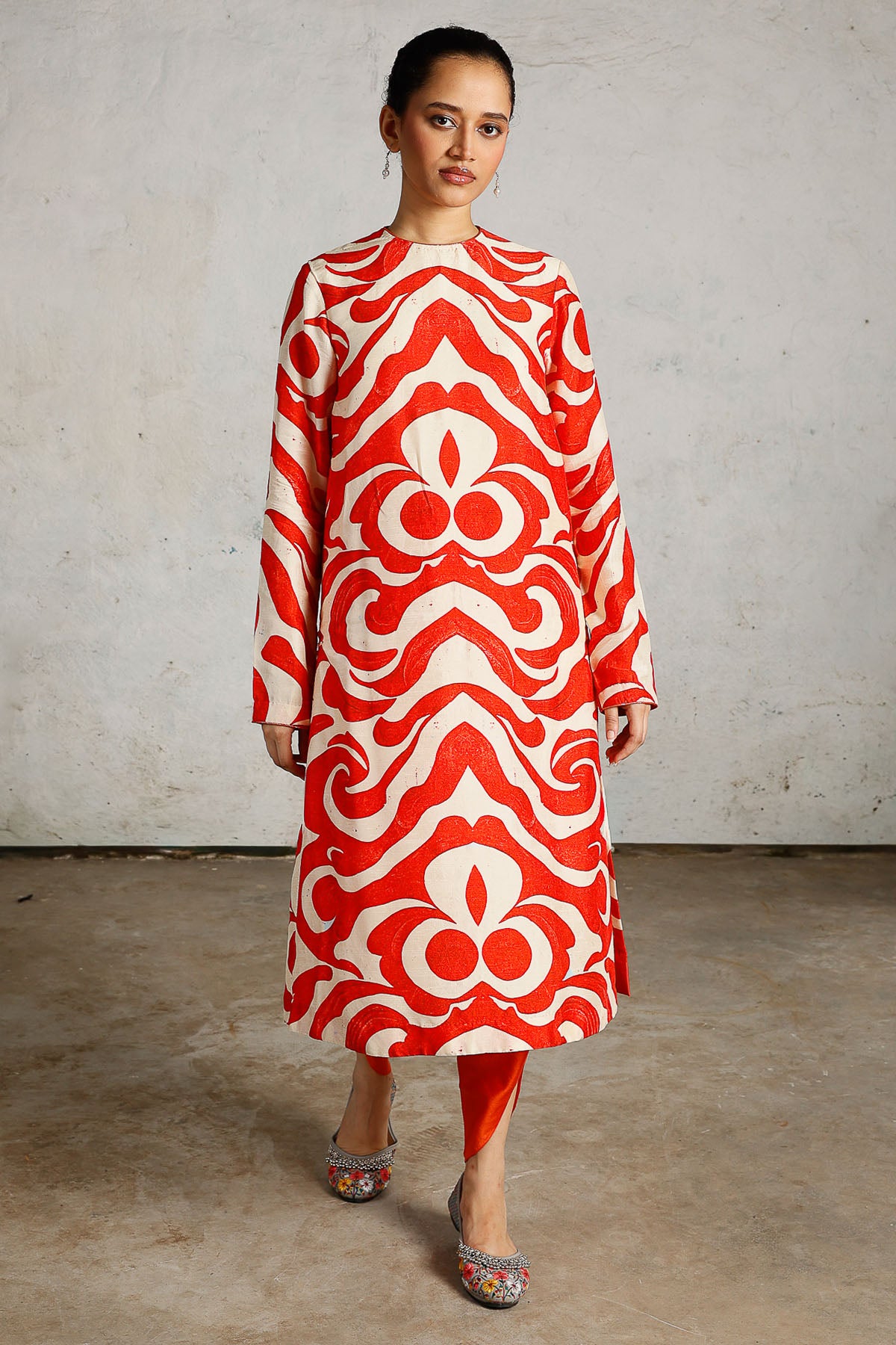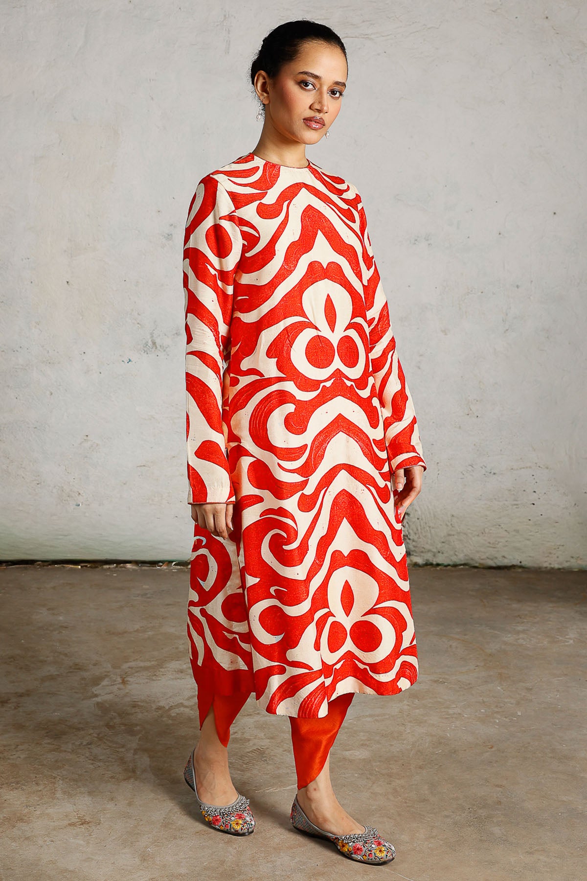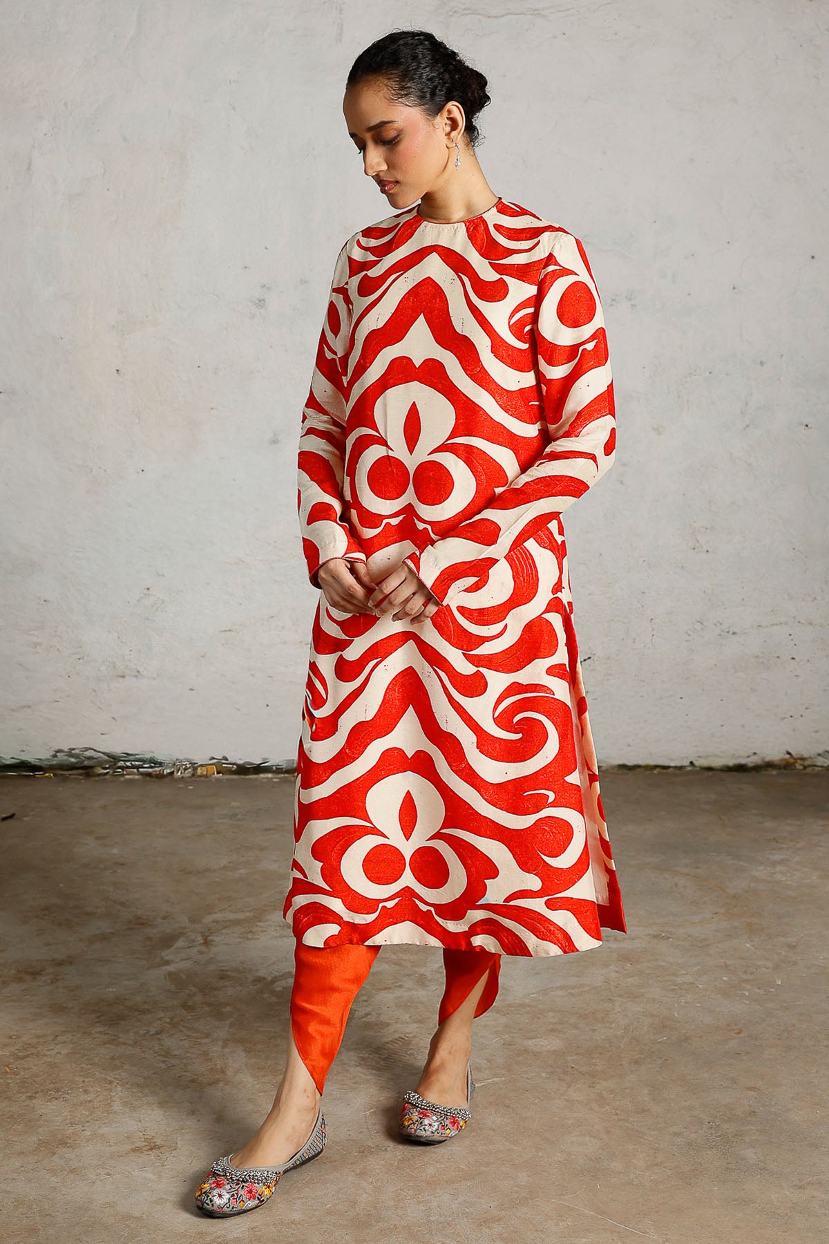 Buy Orange And White Printed Kurta for women by Saksham Neharicka online available at scrollnshops