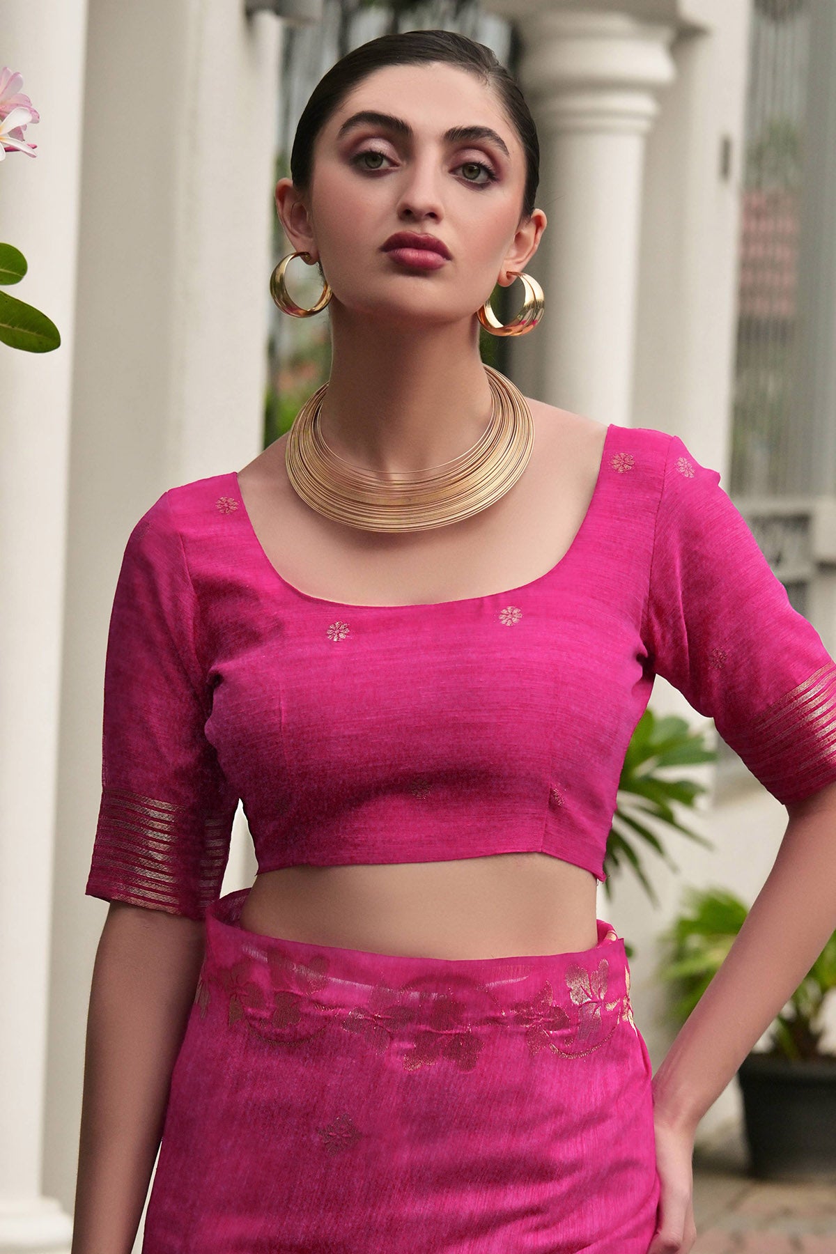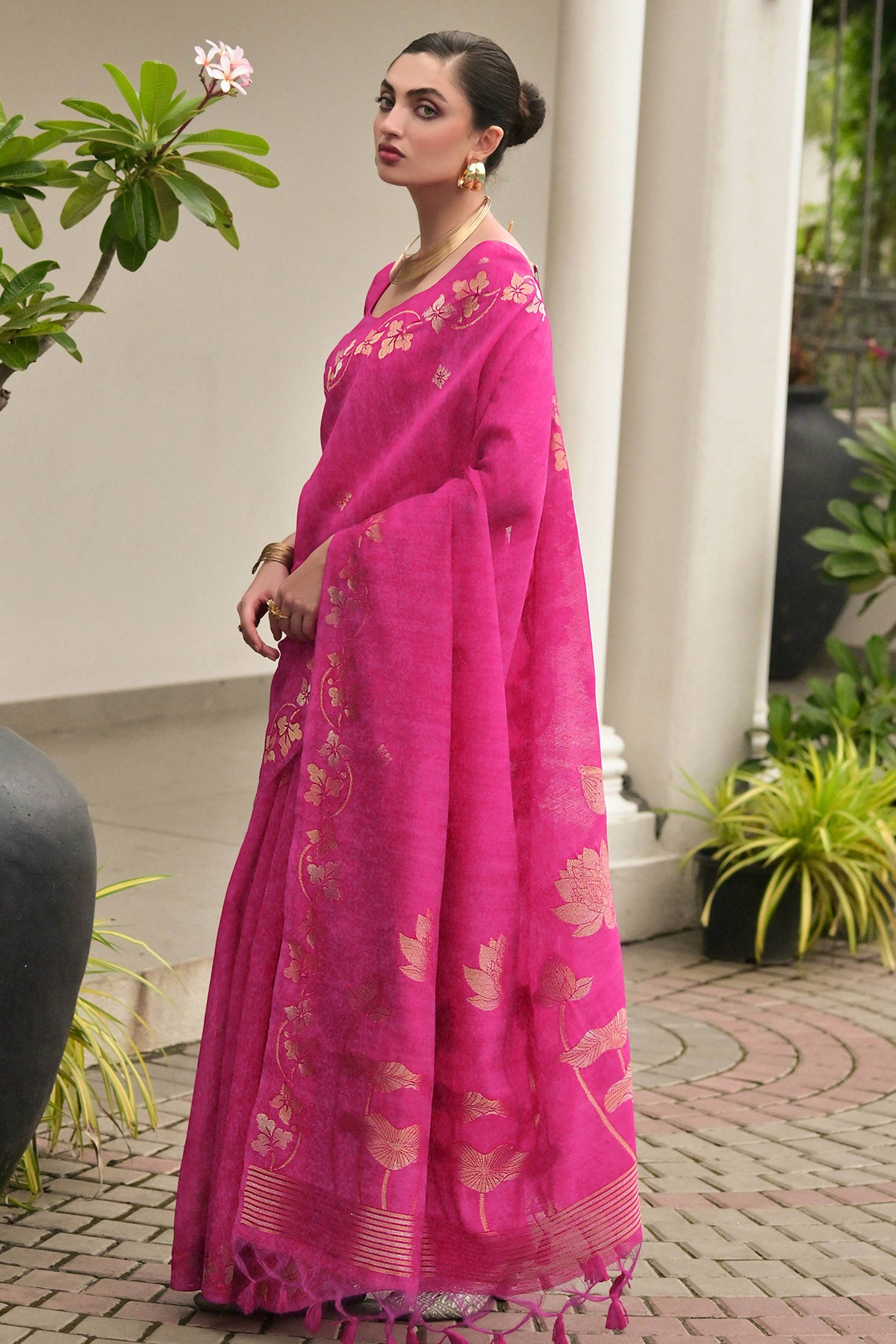Buy Pink Linen Silk Pure Zari Saree for women by Lili Lala Designer online available at scrollnshops