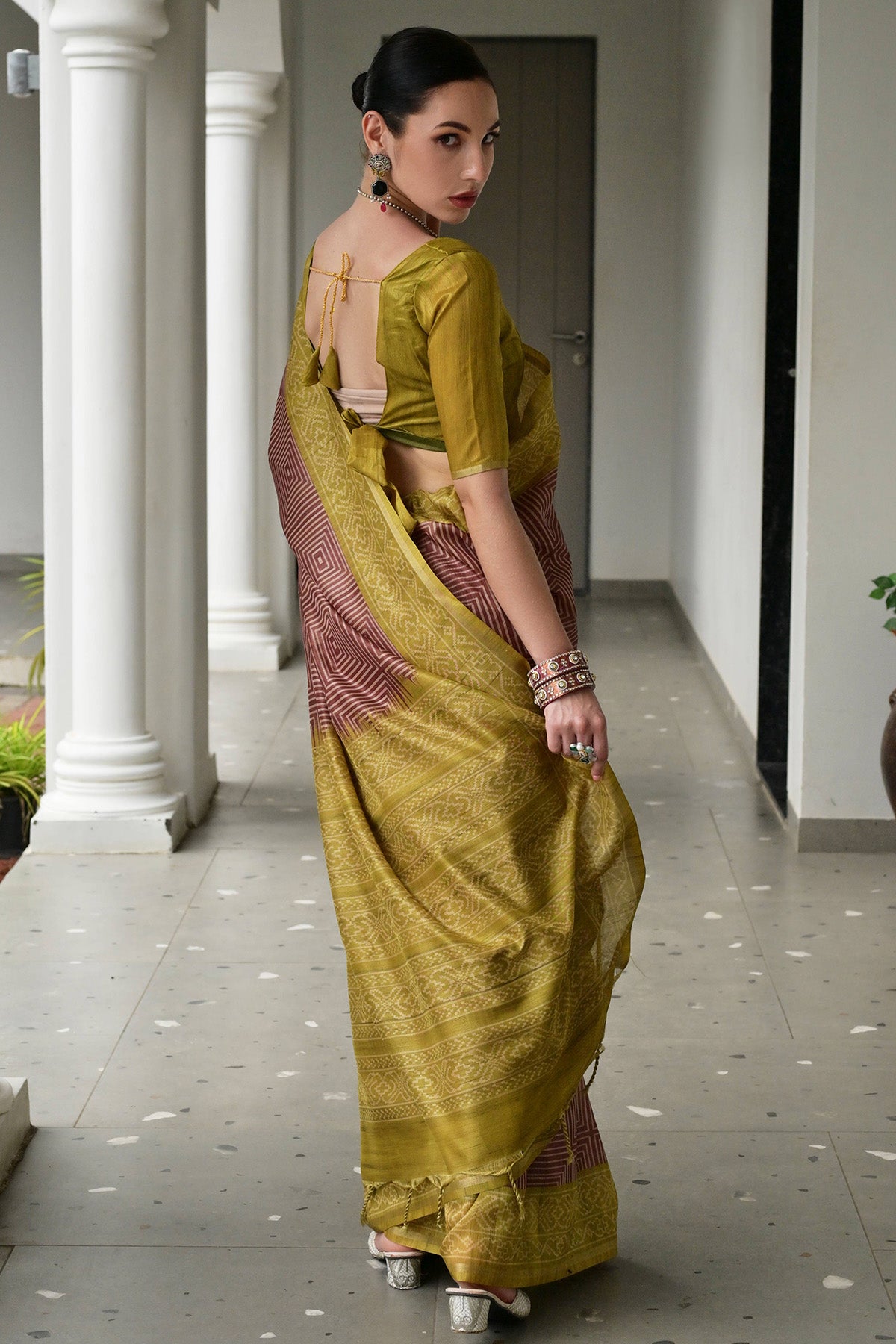Buy Pista Soft Tussar Silk Saree for women by Lili Lala Designer online available at scrollnshops