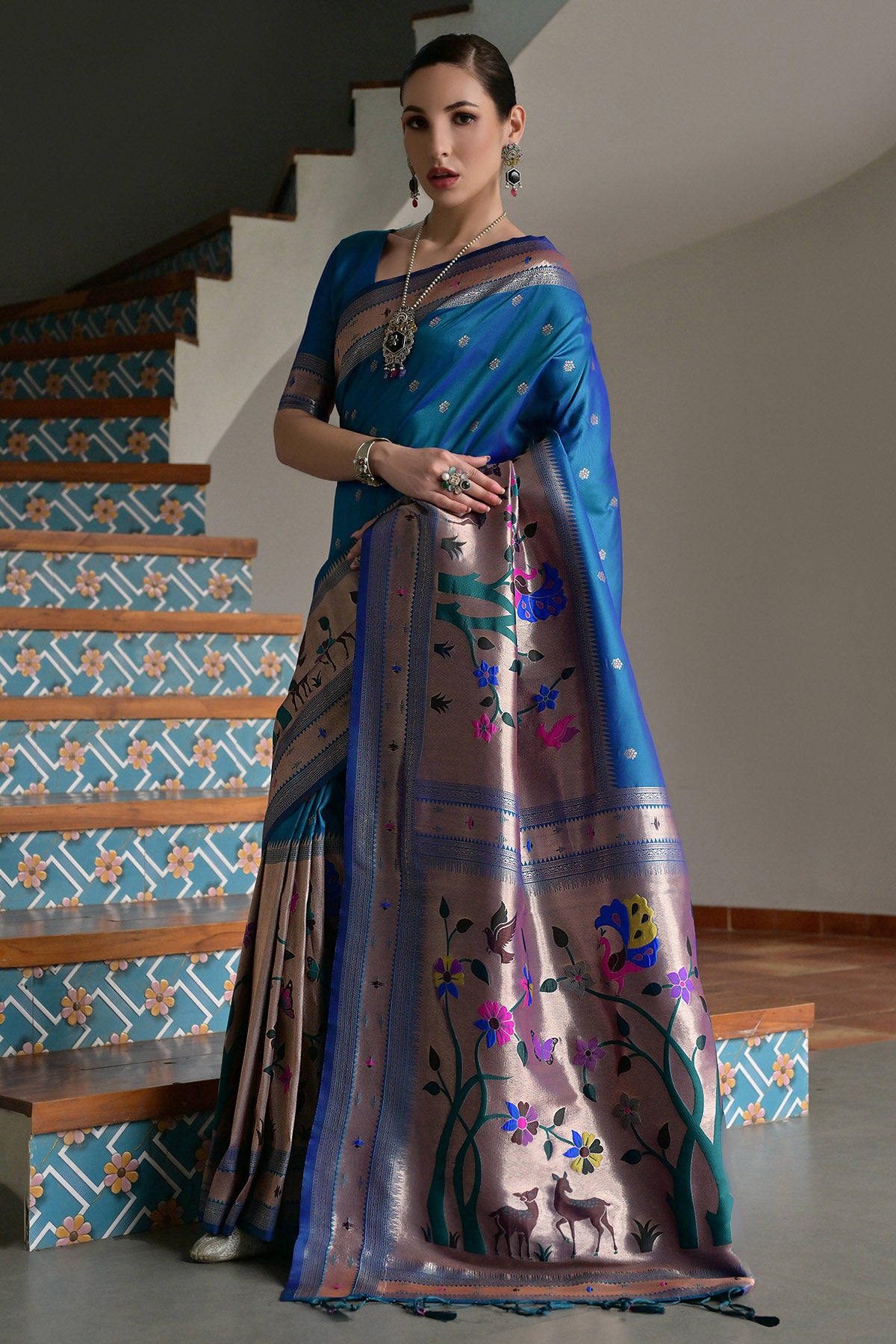 Rama Paithani Silk Woven Saree