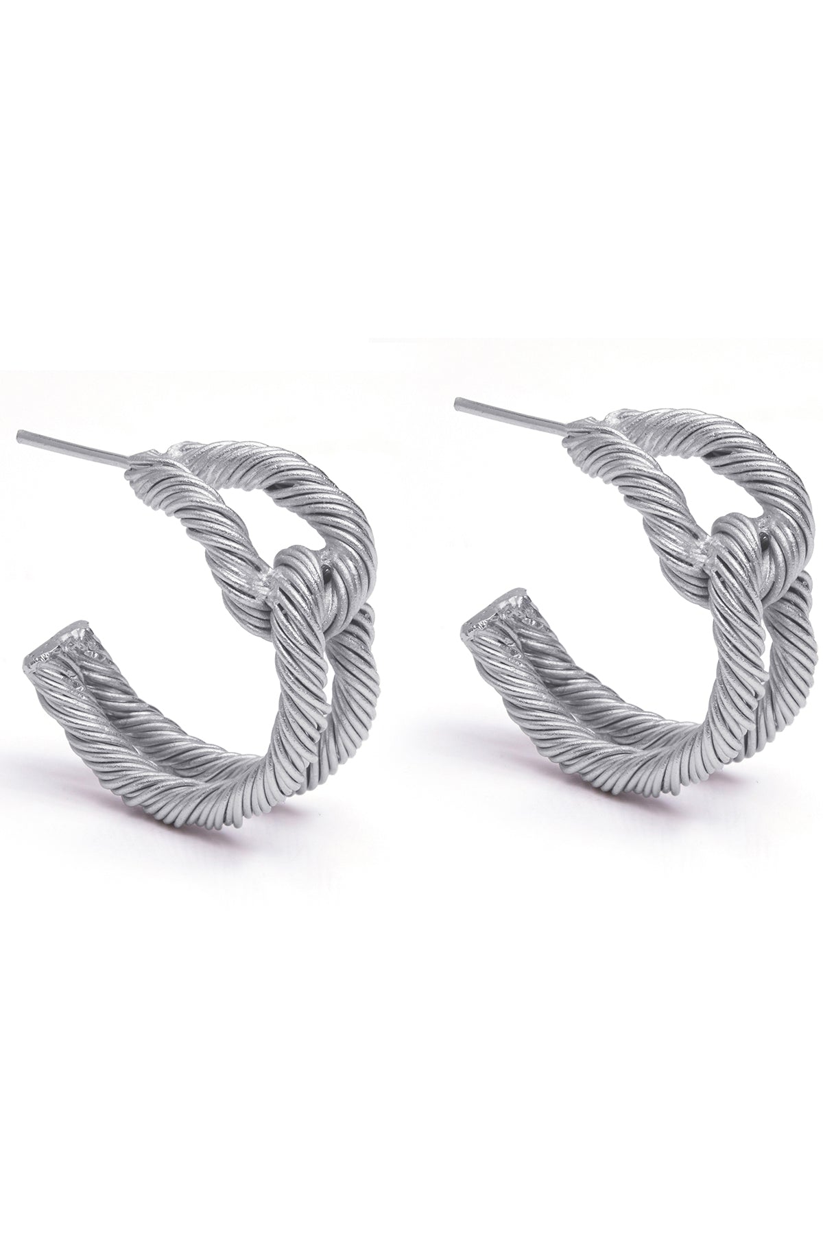 Silver brass hoop earring with knotted style. The dimension is 3H, 2L, 1W