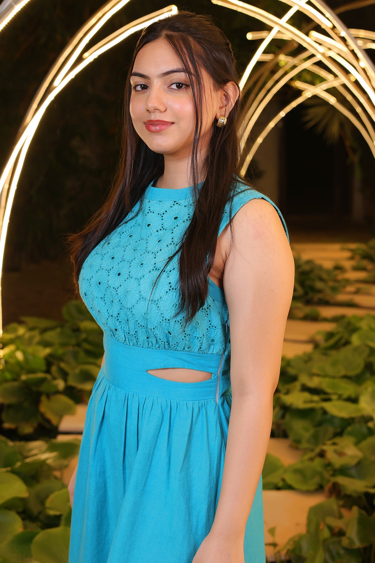 Buy Teal Blue Cotton Floral Dress for women by Styleonn online available at scrollnshops
